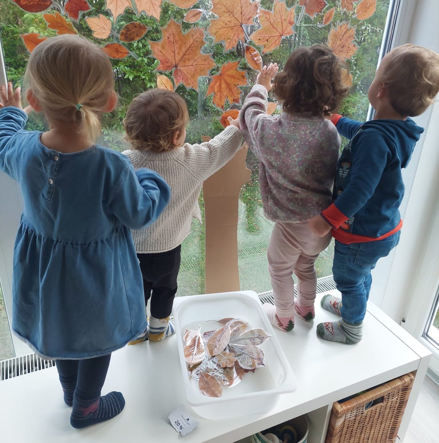 Gegessen wird drei Mal am Tag. Morgens reicht sie eine Frühstückssonne aus Obst, Gemüse und Brot. Nach dem Mittagsschlaf gibt es das von Natalie jeden Tag frisch zubereitete Mittagessen. Ihre Gerichte sind der Einfachheit halber immer fleischfrei. Nachmittags bekommen die Kinder dann nochmal einen Snack, der in der Regel auch Obst und Gemüse beinhaltet. Ja, richtig gelesen: Alles wird von Natalie zubereitet und gestellt. Es darf und muss nichts von zuhause mitgeschickt werden. Einheitliches Essen erschafft Gemeinschaft ohne Neid und ohne Traurigkeit. Ich kann mich selbst allzu gut an Situationen und Diskussionen mit meinem Kindergartenkind zurückerinnern, als wir im Supermarkt standen und er mich bat diese und jene Süßigkeit oder einen fragwürdigen Brotbelag zu kaufen. Weil Kindergartenfreund X oder Sitznachbarin Y dies auch immer dabei hätten. Man denke auch an all die kunstvollen Kuchen- oder Obstarrangements als Mitbringsel an Geburtstagen, bei denen sich oftmals die Mütter scheinbar gegenseitig überbieten wollen. Oder an diese ganzen Brotzeitdosenchallenges mit ausgestochenen Broten und Obst- und Gemüsestückchen in Tierform, die für Social Media auch noch fein abgebildet werden müssen. Ich bewundere das ja immer aber frage mich, wann diese Mütter das alles schaffen. Der Gedanke, an keinem einzigen Tag mehr, eine ausgewogene, abwechslungsreiche Pausenmahlzeit überlegen und zubereiten zu müssen und mein Kind hat trotzdem genau das – einfach nur pädagogisch wertvoller Luxus!!